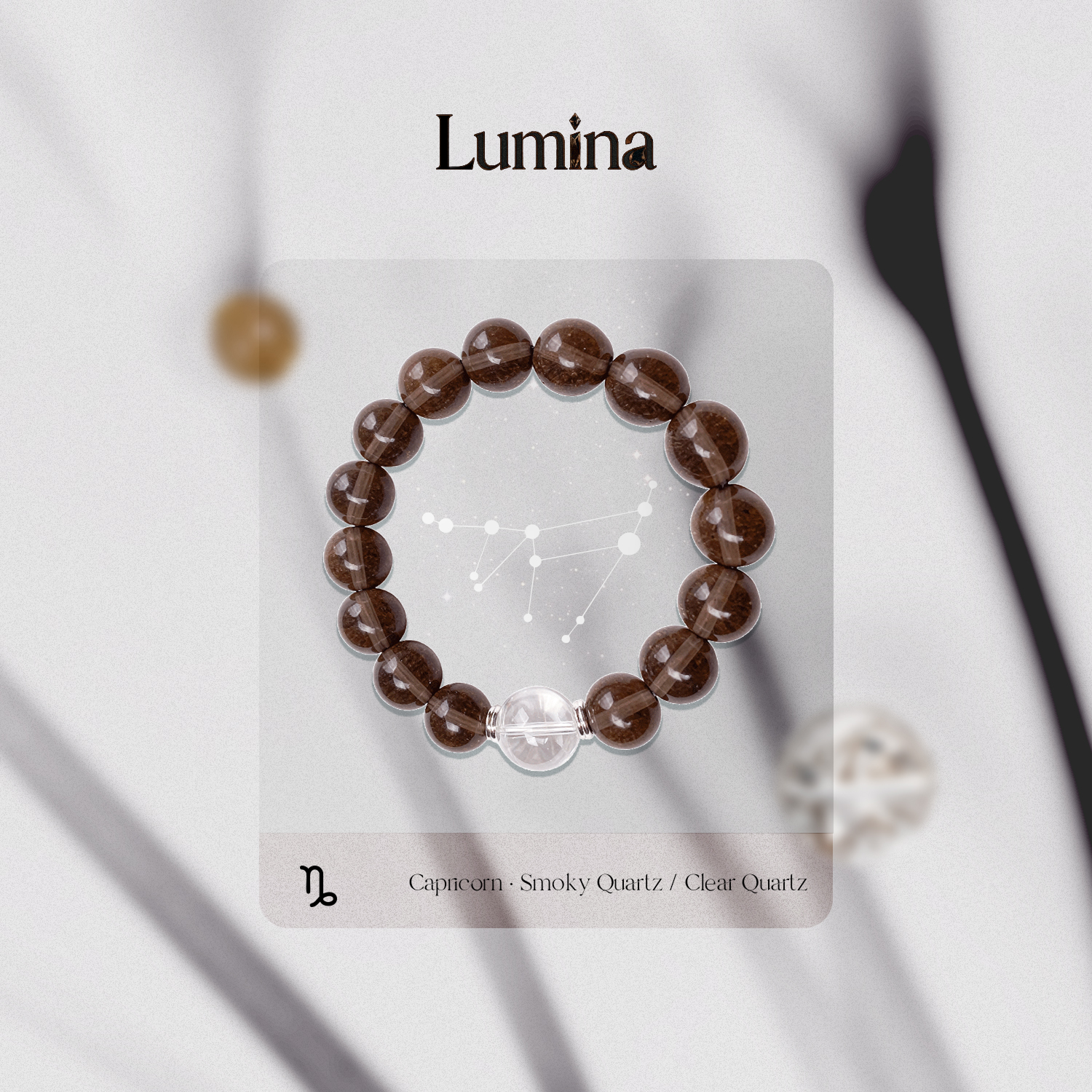 Each bracelet pairs the earthy depth of Smoky Quartz with the pure luminosity of Clear Quartz—echoing Capricorn’s blend of grounded realism and high-altitude vision.