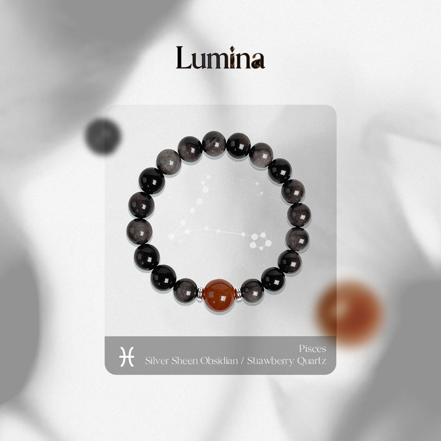 Each bead of Silver Sheen Obsidian carries a subtle silvery glow, like moonlight on deep water, paired with the soft, warm tones of Strawberry Quartzβperfect for Piscesβ blend of mysticism and tenderness.